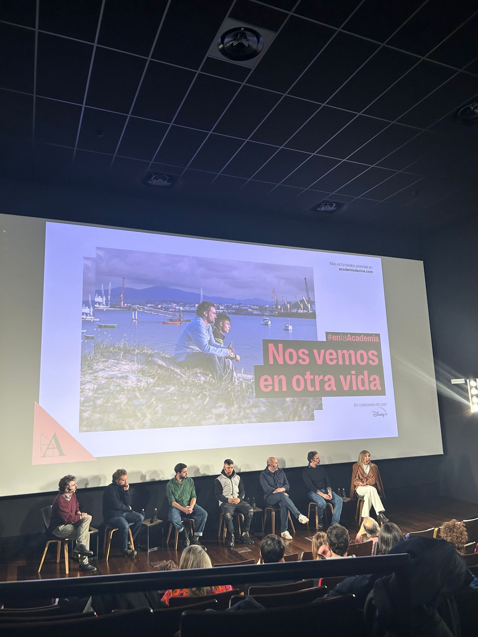 El 26 de febrero, bajo el marco del ciclo ‘Series de cine’, la Academia de Cine proyectó el primer episodio de la serie Nos vemos en otra vida. Tras el pase, sus creadores Jorge y Alberto Sánchez-Cabezudo, los actores Roberto Gutiérrez, Pol López y Quim Ávila, y la vicepresidenta de producción original de Disney + España, Sofía Fábregas, se reunieron con el público y protagonizaron un coloquio en el que hablaron de su trabajo en esta ficción. La serie se estrenará en la plataforma el próximo 6 de marzo.
