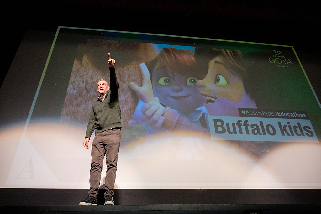 La programación de la Academia de Cine para los más pequeños comenzó el martes 28, con la proyección de Buffalo Kids, nominada a Mejor Película de Animación y Mejor Canción Original. Su productor y guionista, Jordi Gasull, compartió con ellos el proceso para hacer un filme de animación y la temática de esta historia de aventuras familiar, ambientada en el Salvaje Oeste, donde uno de sus protagonistas tiene parálisis cerebral.