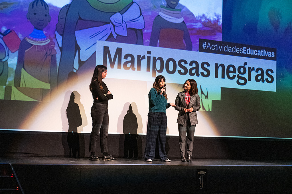 Los alumnos de primaria pudieron disfrutar el miércoles 29 de Mariposas negras, nominada a Mejor Película de Animación, y encontrarse con María Pulido, directora de fotografía y de arte de esta historia, que pone el foco en cómo el cambio climático impacta en la vida de muchas personas a lo largo del planeta, que se ven forzadas a migrar para sobrevivir. Un drama que Mariposas negras muestra a través de la historia de tres mujeres.