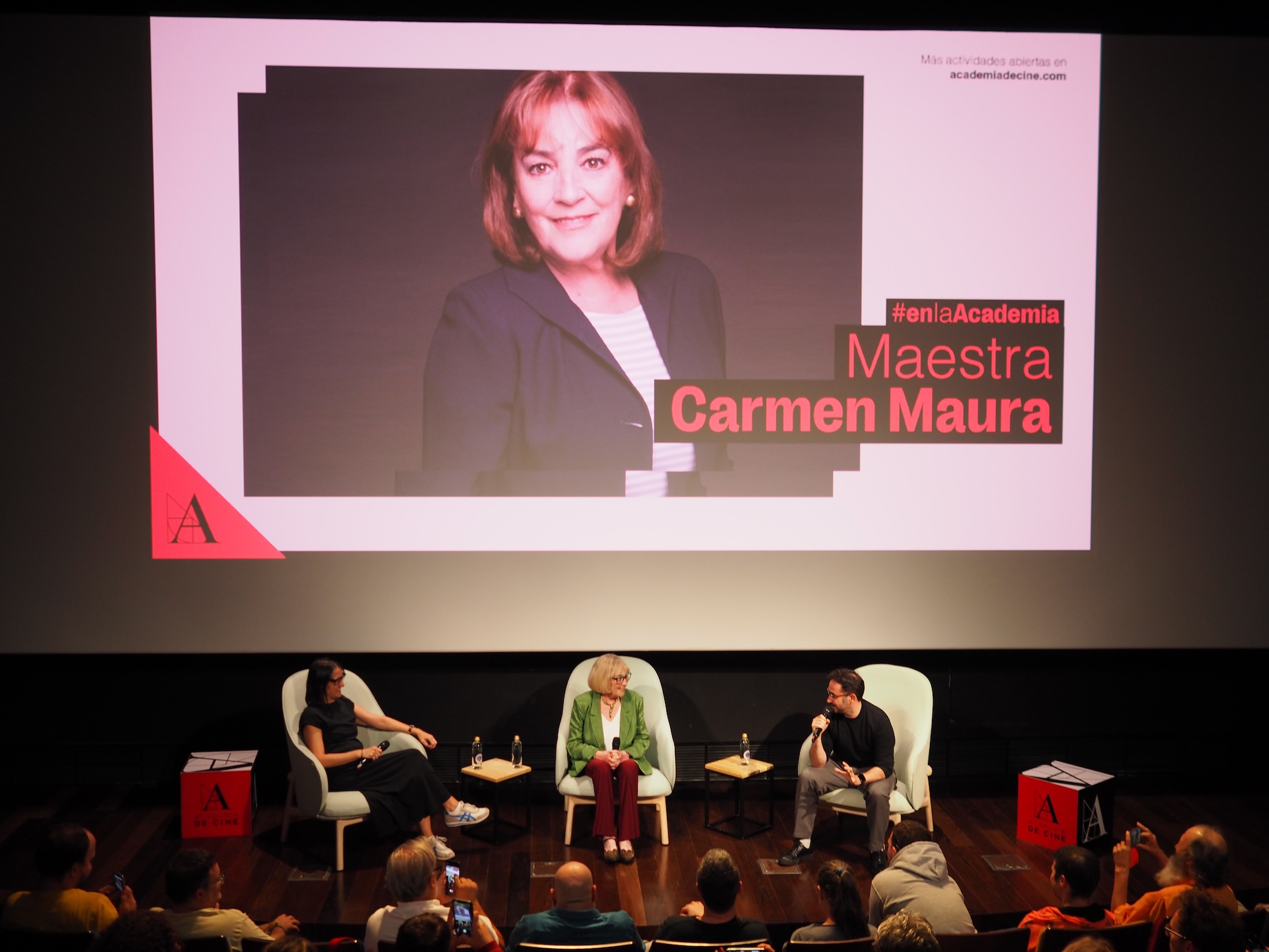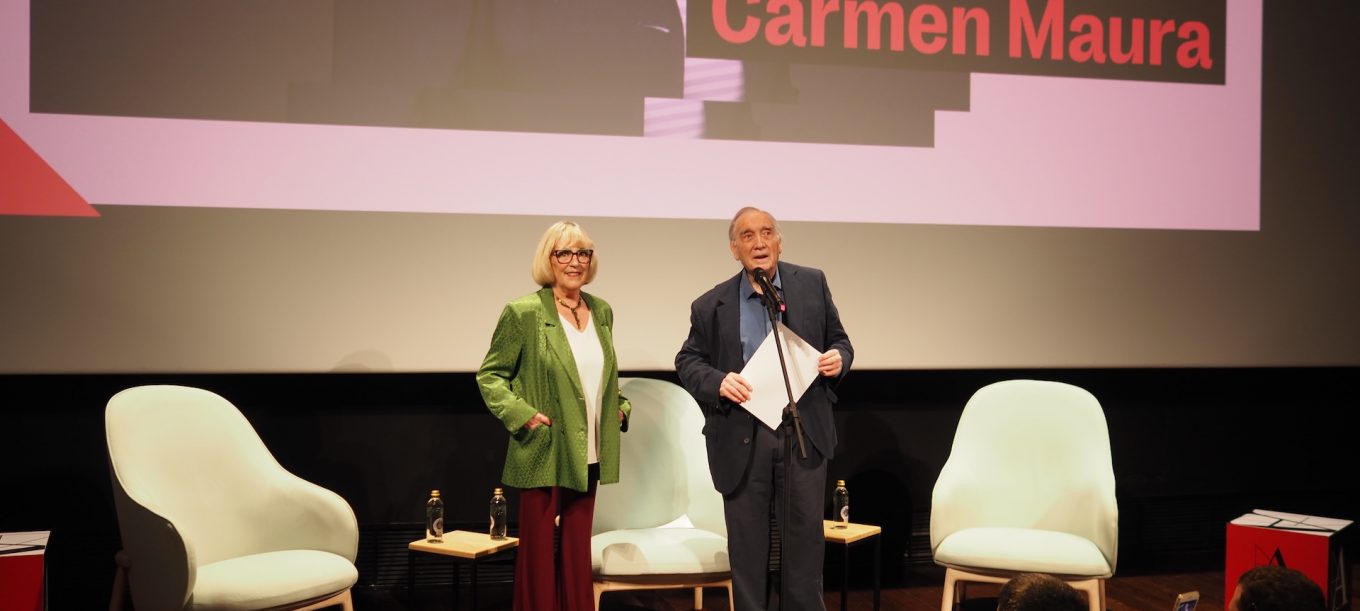 Carmen Maura ya es una de las ‘maestras’ de la Academia de Cine. La intérprete madrileña fue la protagonista de un homenaje en la institución, que reconoció su extensa trayectoria, a la que acaba de sumar Vieja loca, coproducción entre España y Argentina que se vio en la sala de la calle Zurbano. Acompañada por J.A. Bayona y Belén Atienza, productores de esta historia, Maura recordó sus inicios en la industria, habló sobre algunas de las películas más recordadas de su carrera y dejó constancia de su estupendo estado físico y mental recién cumplidos los ochenta años. La actividad contó con unas palabras de bienvenida por parte del presidente de la Academia, Fernando Méndez-Leite.