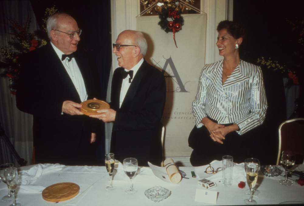 José Luis Borau entrega la Medalla de Oro de la Academia a Alfredo Matas junto a Carmen Alborch (1994)