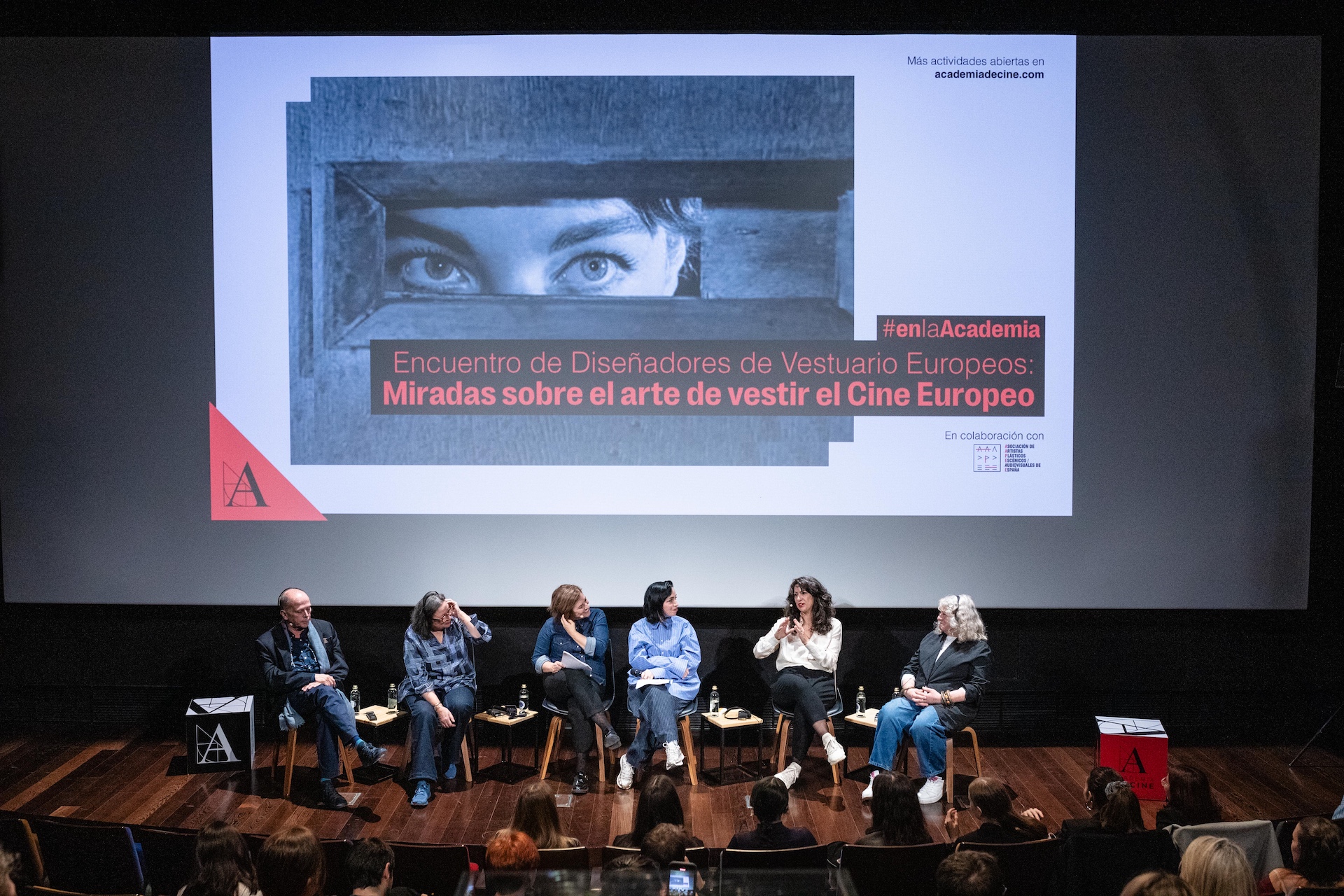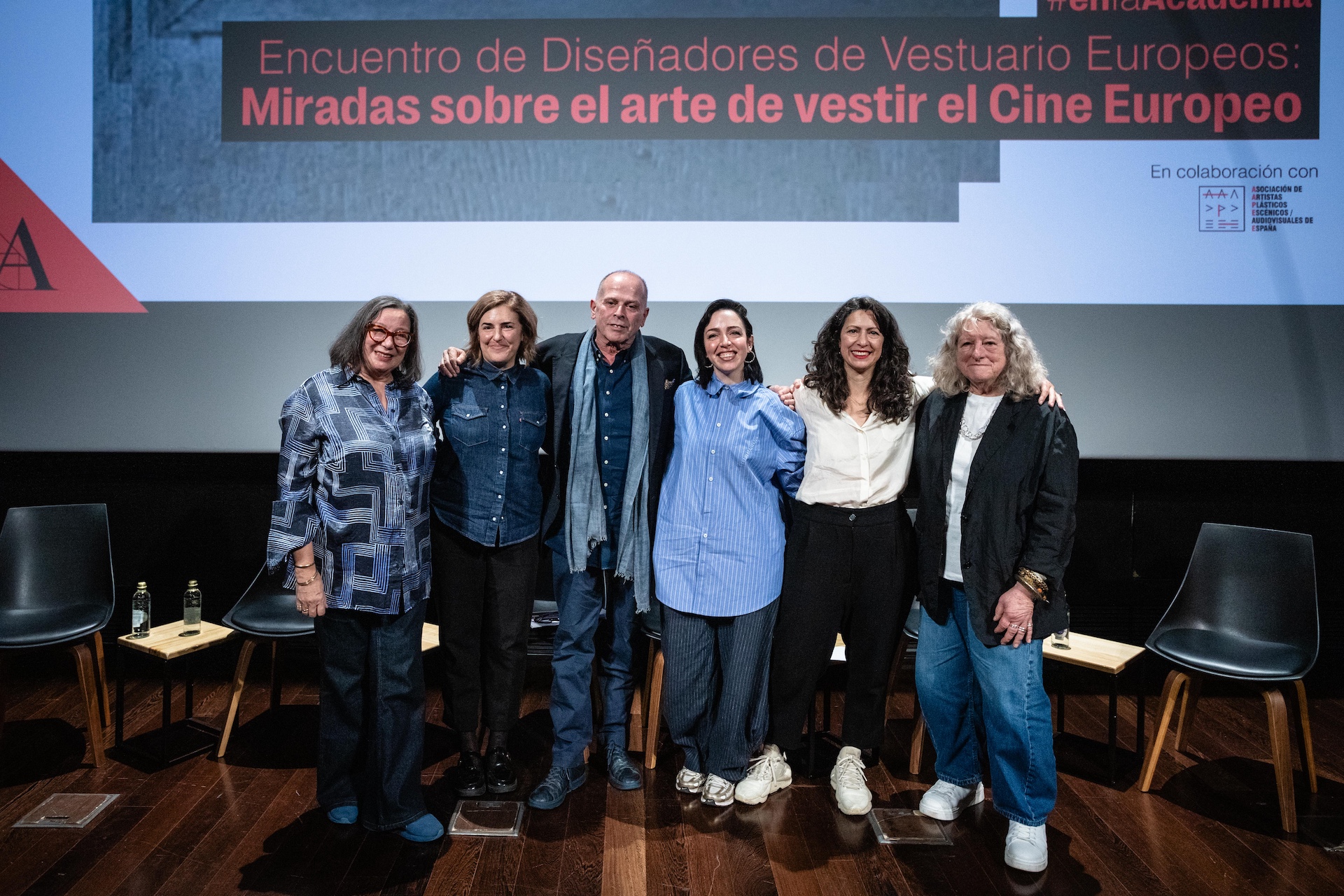 Este martes la Academia de Cine acogió la mesa redonda ‘Miradas sobre el arte de vestir el cine europeo’, un encuentro que contó con la presencia de Jenny Beavan, Carlo Pogglioli, Susana Abreu y Linda Bogers, y fue moderado por las diseñadoras de vestuario Nerea Torrijos y Elda Noriega.
