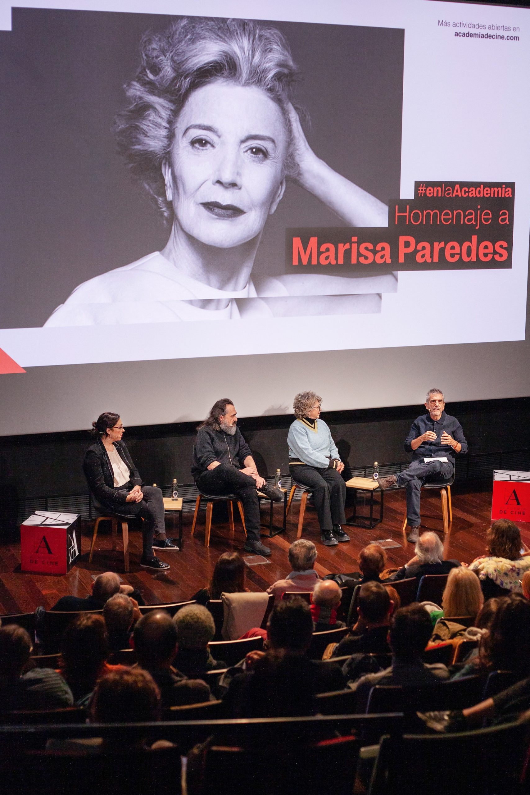 Este miércoles la Academia de Cine rindió homenaje a Marisa Paredes, actriz imprescindible del Cine español que presidió la Academia de Cine entre 2000 y 2003 y fue reconocida en 2018 con el Goya de Honor. El presidente de la Academia, Fernando Méndez-Leite, mantuvo en un encuentro con la actriz María Isasi, el director y guionista Joaquín Oristrell, la productora de El Deseo Esther García, el director y guionista Carlos Molinero, entre otros amigos y compañeros de profesión antes de la proyección de la película Salvajes, firmada por Molinero en 2001.