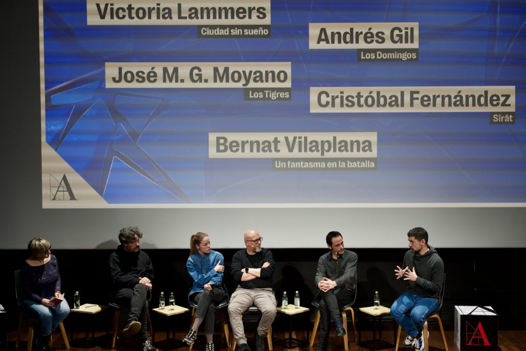 Este martes la Academia de Cine acogió un encuentro con las nominadas y nominados a Mejor Montaje, con la participación de Victoria Lammers (Ciudad sin sueño); Andrés Gil (Los Domingos); José M. G. Moyano (Los Tigres); Cristóbal Fernández (Sirât) y Bernat Vilaplana (Un fantasma en la batalla).