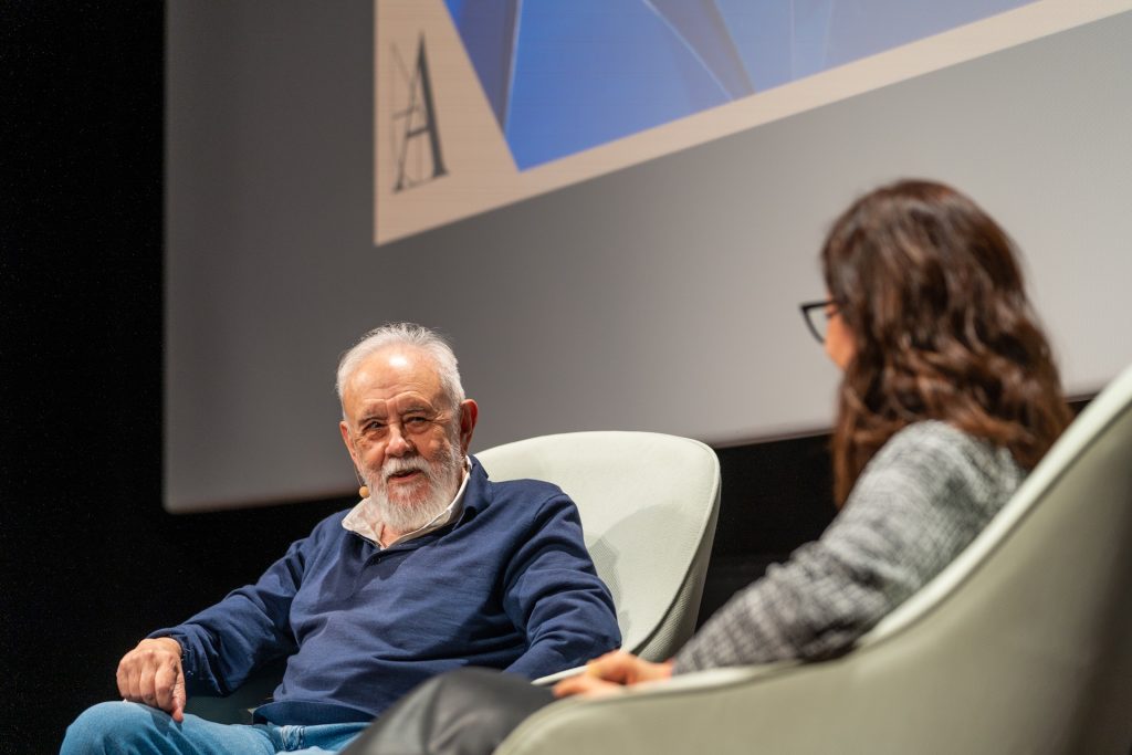 «A mis primeros 91 años, me he dado cuenta de que la vida es lo que hay aquí y ahora, ni antes ni después», declaró el creador, que desgranó algunos de los detalles sobre su proceso creativo. «Yo le debo mucho al fútbol», explicó, «porque estuve haciendo informes sobre los equipos rivales para el Inter de Milán, y aprendí mucho de estrategia, porque lo importante era fijarte donde no estaba el balón, qué pasaba en el espacio donde no se está fijando la atención». Una búsqueda sobre lo no tan evidente del mundo que se palpa en su cine, que no repasa una vez terminado. «He visto Remando al viento y no creo que sea mía, porque me ha gustado».